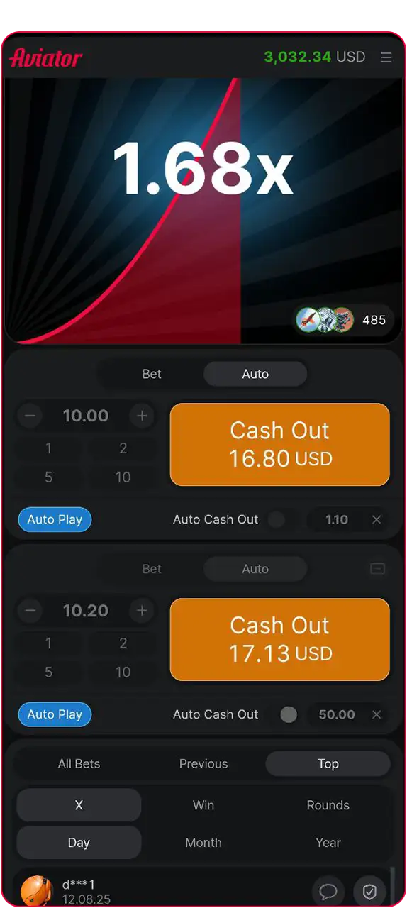 - Watch the flight. Multiplier starts at 1.00x. Click Cash Out to secure winnings before the plane crashes. Do not wait for high multipliers every round.