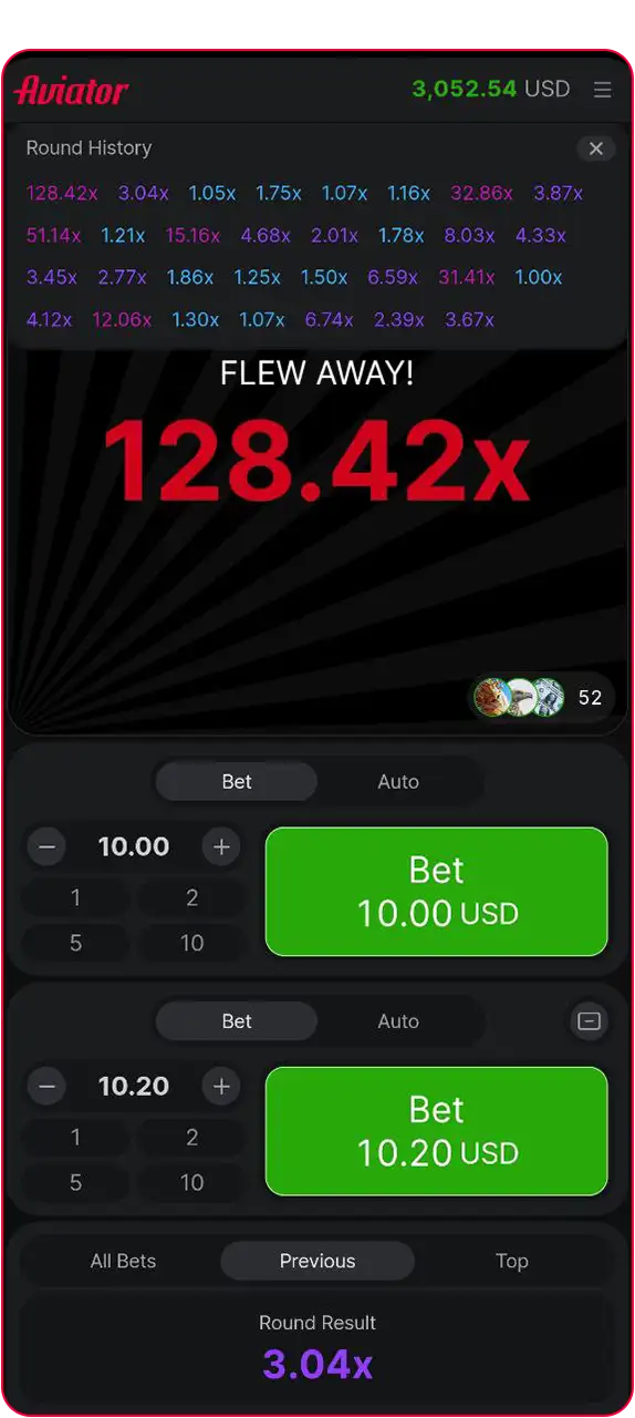 The aggressive betting strategy in Aviator bet focuses on waiting for higher multipliers, such as 5x or above, to target bigger payouts. This approach uses the manual or auto cash out features and usually involves setting targets above the average crash point of 2.00x. Players can place up to two bets per round and use independent cash out options.